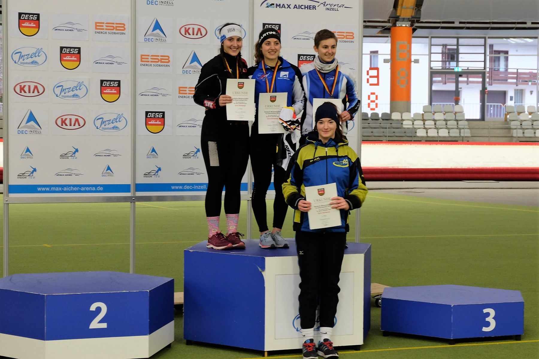 Bei der Sprint-DM der Junioren A/B belegte Chantal Müller Rang 4, während Gianina Künstler Pech hatte und durch einen Sturz im ersten Lauf ihre Hoffnungen begraben musste. Bei der Langstrecken-DM holten Henrike Michalke mit Silber (Ak A) und Katharina Pönisch (Ak B) mit Bronze über 3000m weitere Medaillen für den ECC, Lucy Mehnert (Ak B) belegte hier Rang 5. Bei den Herren wurde das Podest knapp verfehlt durch Max Meinig (Ak B) als vierter über 3000m und 5000m sowie Henning Prause (Ak A) als vierter über 3000m und Bastian Vogelsang (Ak A) ebenfalls als vierter über 5000m. In den abschließenden Massenstartläufen belegte Chantal Rang 6, die Plätze 9-12 gingen an Henrike, Gianina, Katharina und Lucy. Am Ende hatte fast jeder neue persönliche Bestzeiten im Gepäck. Für die nächsten Höhepunkte nach dem Jahreswechsel wünschen wir viel Erfolg!