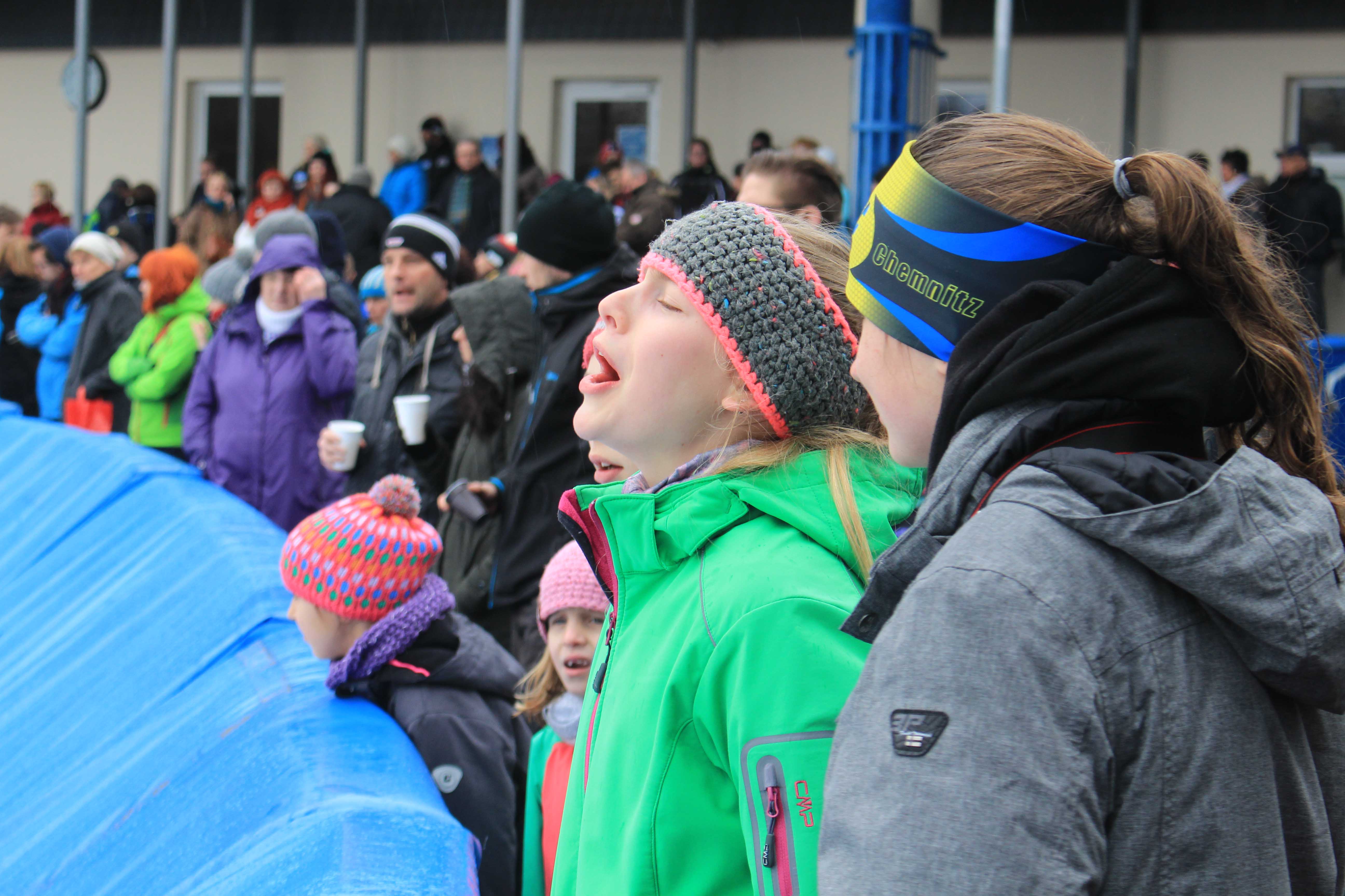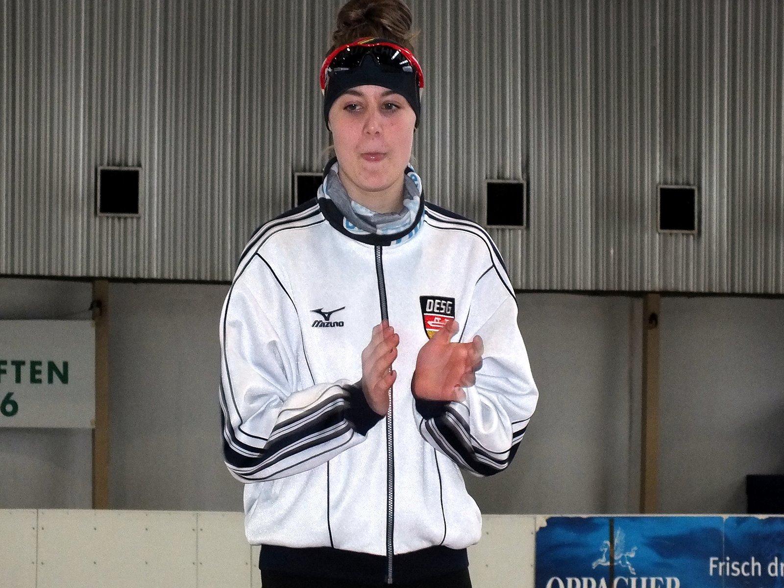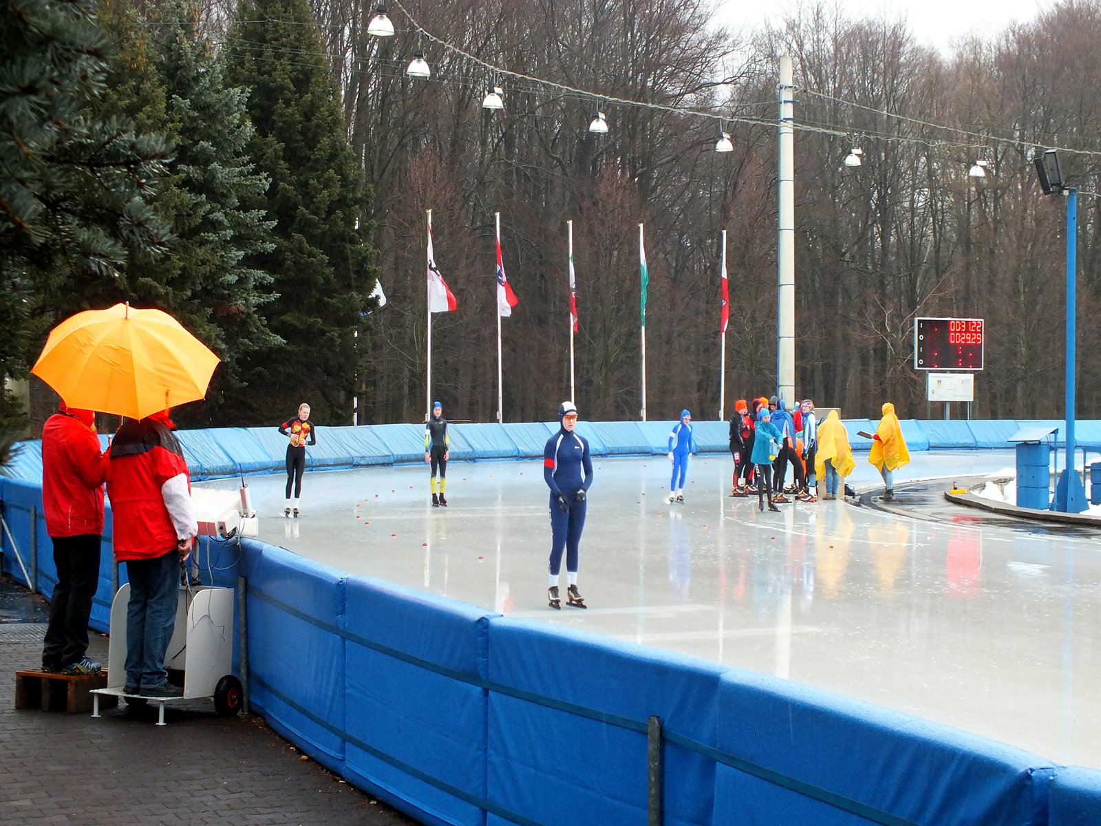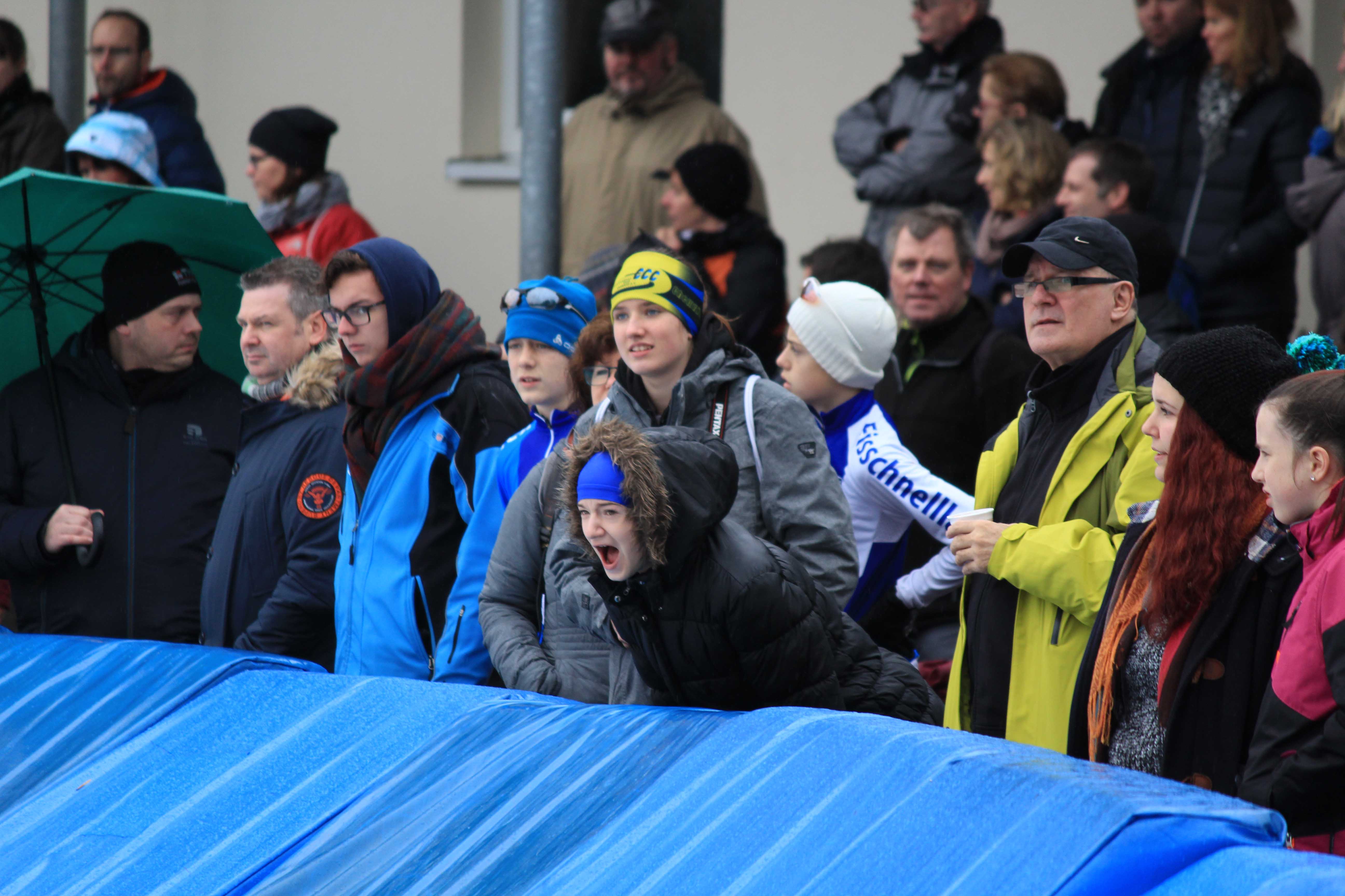 Am 20. und 21. Februar fanden auf dem Chemnitzer Eisoval als Saisonhöhepunkt die Deutschen Juniorenmeisterschaften 2016 in den Altersklassen C und D statt. Leider ließ sich das Wetter von den Sachsenmeisterschaften nicht konservieren, und so fanden die Wettkämpfe doch unter recht schlechten Bedingungen statt. Am Samstagvormittag war es noch trocken, doch gegen Mittag setzte der vorhergesagte Regen ein. Noch schlimmer war es am Sonntag. Teilweise standen Seen auf dem Eis, mancher büßte den Schliff seiner Kufen ein, es gab mehrere Stürze und meist war kämpfen statt gleiten angesagt. Umso bemerkenswerter, dass es einige Bahnrekorde gab durch Felix Motschmann (AK 12) aus München über 500 und 1500m sowie Denis Lederer (AK14) aus Berlin über 1000 und 3000m. Einmal mehr war aber festzustellen, dass unsere Bahn eine Überdachung braucht, um den Bundesstützpunkt konkurrenzfähig zu halten. Insgesamt waren 66 junge Damen und 55 Jungen am Start. Von den 10 Startern des ECC gibt es recht Erfreuliches zu berichten: Deutsche Mehrkampfmeisterin der Altersklasse C2 (15) wurde souverän Kristin Meyer. Sie konnte auch alle 4 Einzelstreckenwertungen für sich entscheiden. In der gleichen Altersklasse wurde das Podest durch Chantal Müller als Bronzemedaillengewinnerin komplettiert, die über 500m Zweite und über 1000m Dritte wurde.