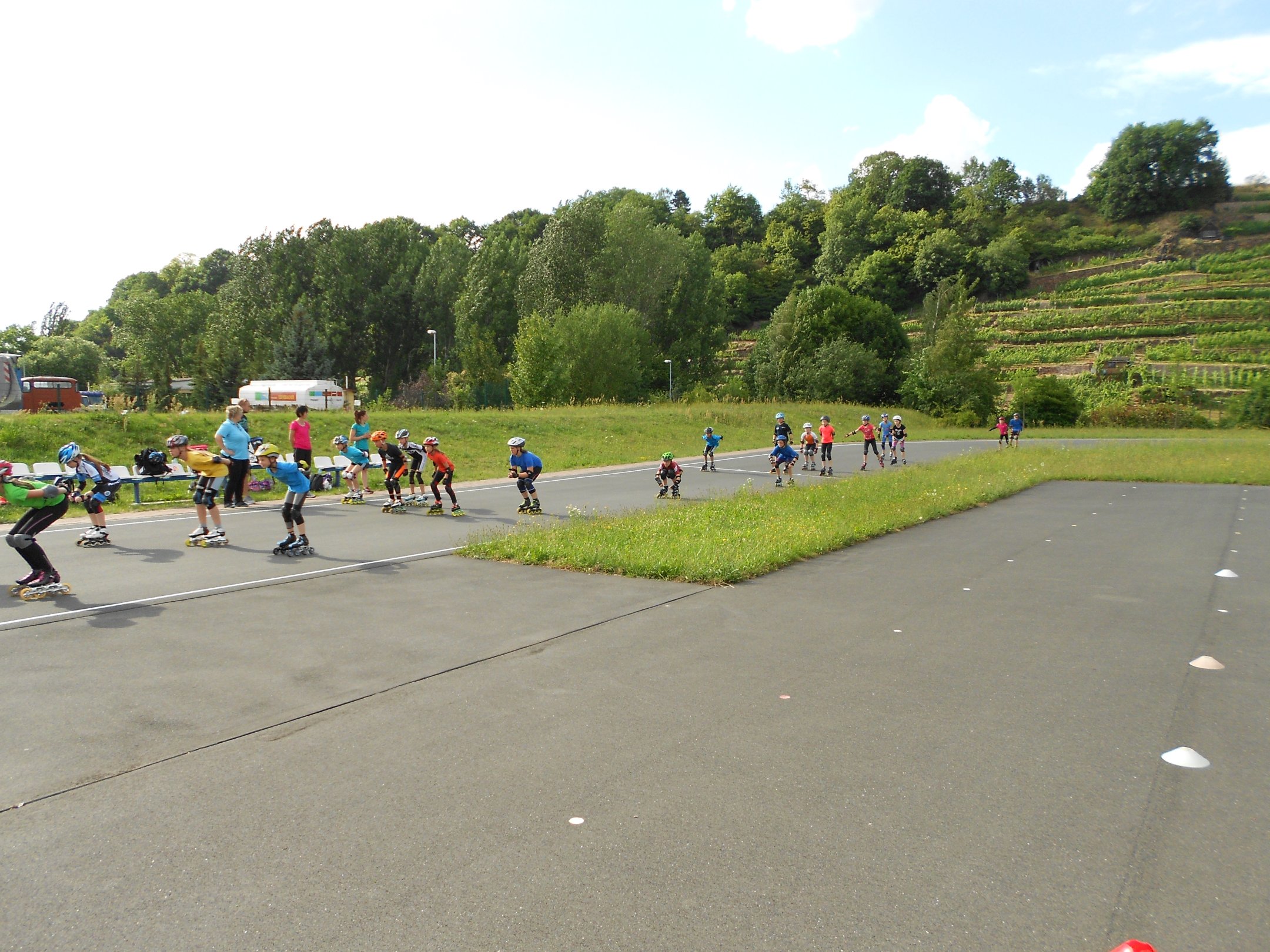 Am Mittwoch fand ein gemeinsames Training der Meißner Speedskater mit einem Teil unserer Nachwuchssportler auf der Meißner Skateranlage statt. Betreut von Frau Uhlig, Frau Langer und Herrn Seidenglanz hatten unsere Jüngsten die Gelegenheit, sich mit der Technik und den Abläufen einer dem Eisschnelllauf ähnlichen Sportart vertraut zu machen. Neben dem reinen Tempolauf standen auch Technik und Bewegungsabläufe auf dem Programm. Am Ende  wurde es ein Trainingsnachmittag der anderen Art, der allen viel Spaß gemacht hat.
