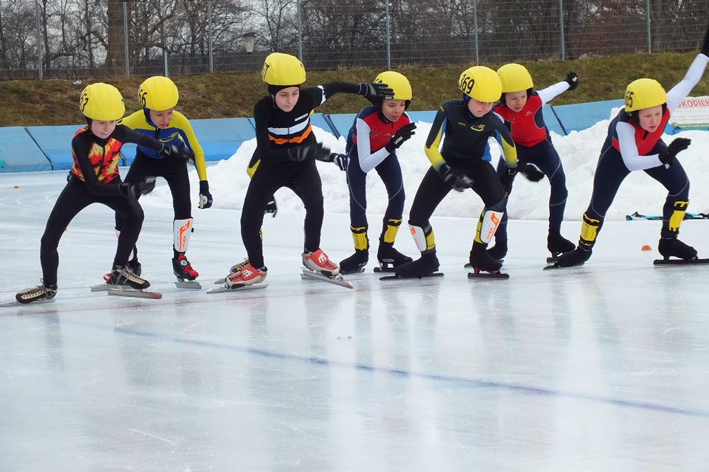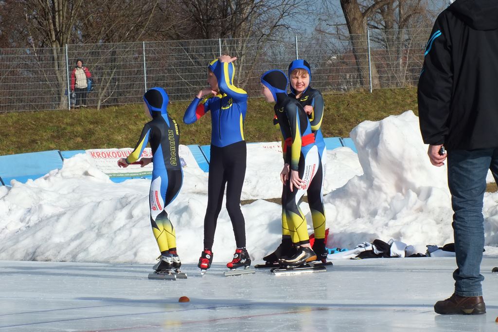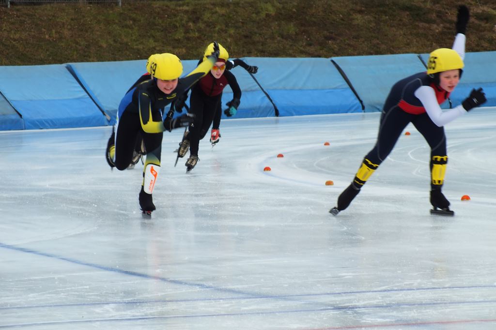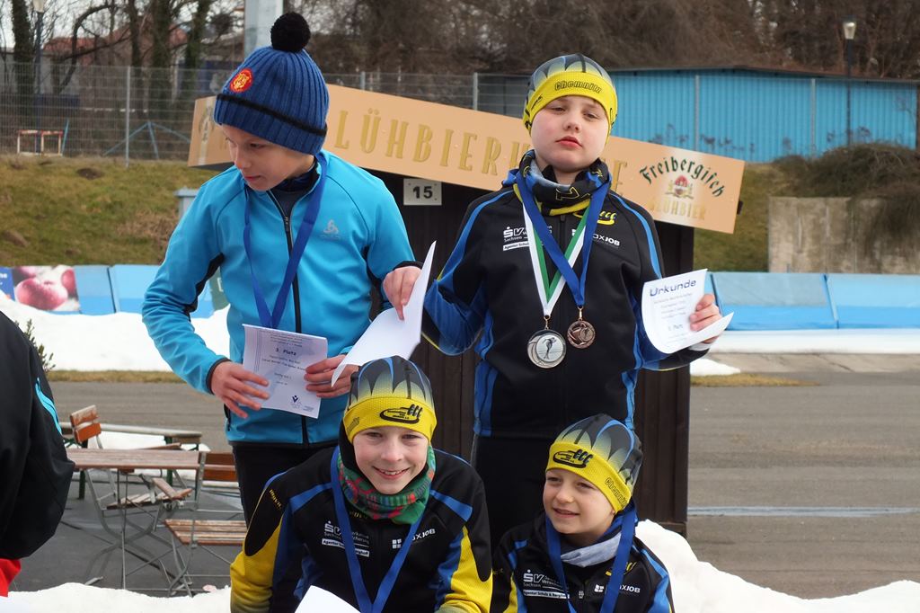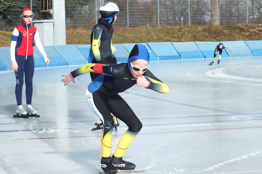 Am 21.2.2015 fand in Dresden die Sächsische Meisterschaft der Altersklasse E1/E2 statt. Hier sicherten sich nach 2 x 200m und Massenstart (E1 1 Runde und E2 2 Runden) den Vizemeistertitel Emelie Vogelsang und Adrian Werner. Sie erkämpften sich in persönlichen Bestleistungen die Silbermedaille. Richard Schreiter errang bei seiner ersten Sächsischen Meisterschaft nach einem engagierten Massenstart die Bronzemedaille. Knapp das Siegerpodest verpasst hat Tim Kühnl als Vierter der AK E2.