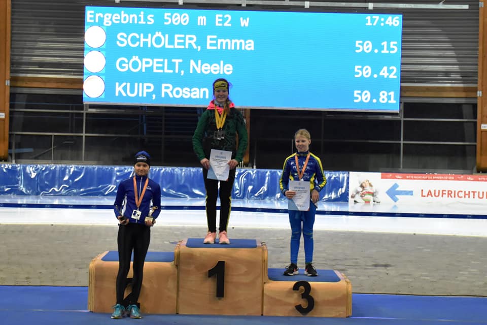 Rafael Weber gewann zwei Bronzemedaillen in der AK D über 500m und 1000m. Bei den C Mädchen gab es sogar 2 Sportler auf dem Treppchen: Larissa Flade mit Gold über 500m und Bronze über 1000m sowie Nora Kästner mit Bronze und Silber über beide Strecken.