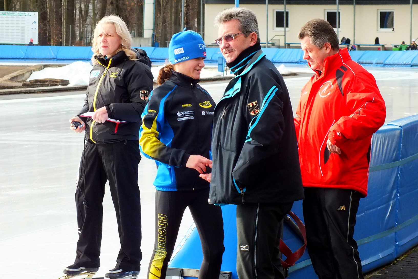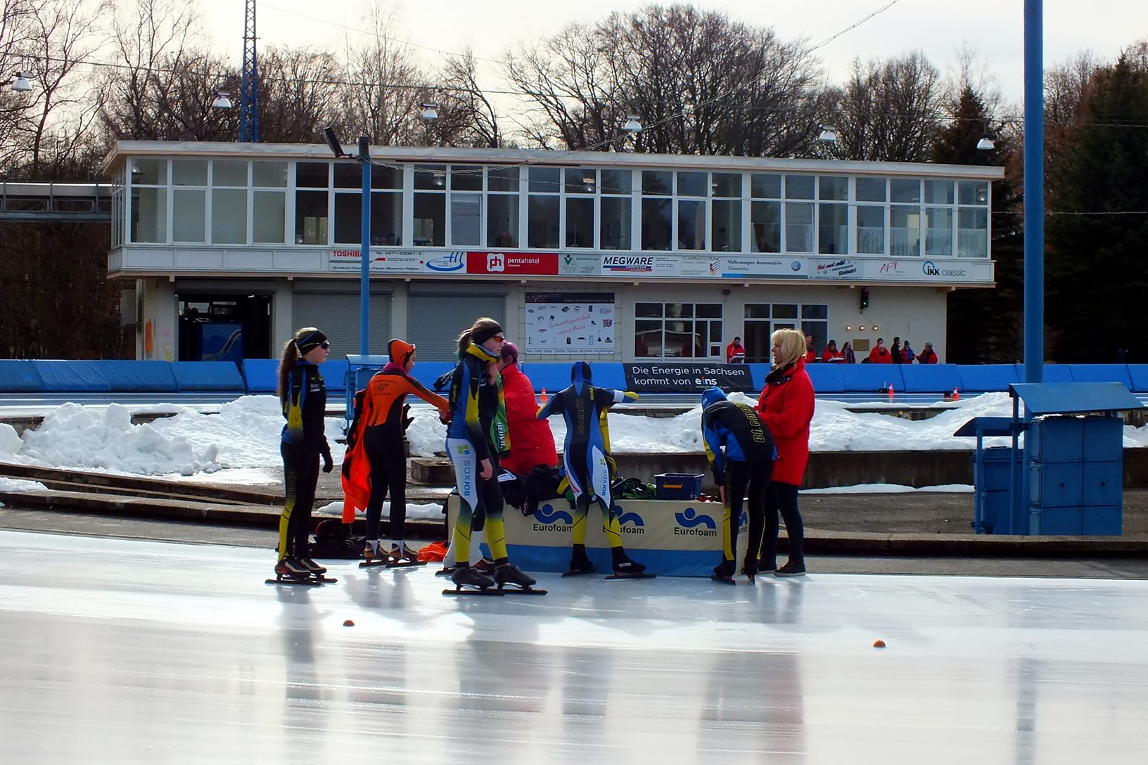 Insgesamt waren 59 Starter aus Dresden, Crimmitschau, Mylau und Chemnitz am Start, davon allein 18 Mädchen der AK D1. Dass die Bedingungen gut waren zeigte der neue Bahnrekord von Manuel Zähringer (TSM, AK D2) über 1000m. Doch auch die Mädchen und Jungen aus Chemnitz waren gut in Form. Nach jeweils 2 Strecken sind Katharina Pönisch, Marius Platzer, Emelie Vogelsang und Finn Bennet Brandt auf Medaillenkurs. Die Entscheidungen fallen morgen, wenn 2 weitere Strecken absolviert sind.