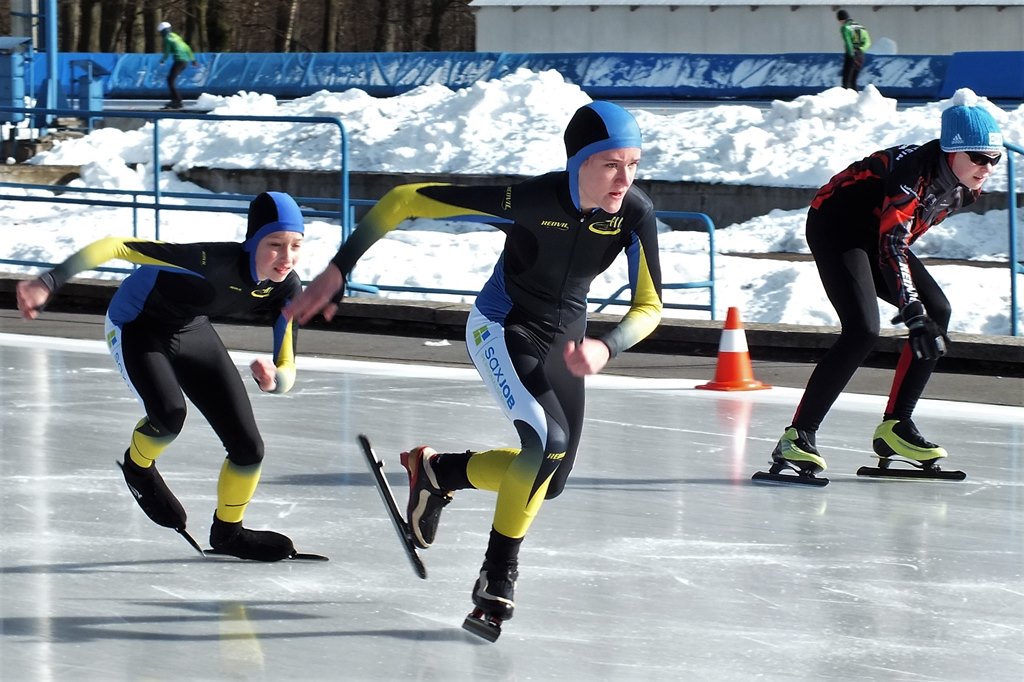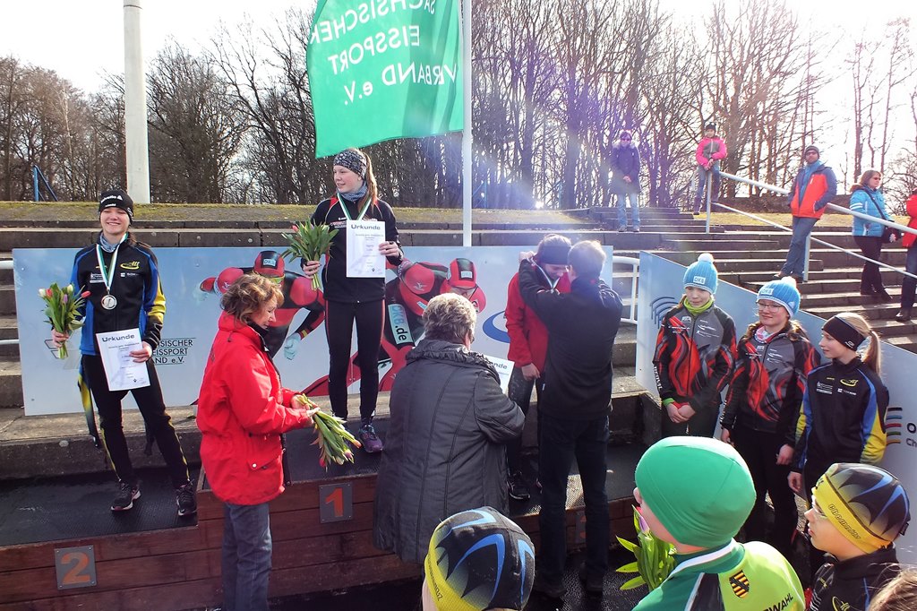 Im Anschluss an die Einzelwettbewerbe fanden noch spannende Teamverfolgungsrennen statt. Dabei ging es um je eine Runde, es starteten jeweils 2 Teams aus 2 Läufern. Siege holten sich hier die Teams mit Larissa und Karolin sowie Emelie und Vivien. Dritte Plätze holten Katharina und Marius sowie Nora und Richard. Die Trainer Harald Harnisch und Tony Seidenglanz konnten sich kurz vor Saisonende noch einmal über gute Leistungen freuen.