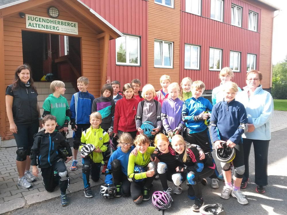 “Vorbereitung auf die neue Wintersaison 2014/2015, ohne Schnee, aber mit viel Sonne, gute Laune und Abwechslung” Vereinstrainingslager August 2014 in Altenberg mit den Sportlern der AK 8-11 und den Trainerinnen Sandy Kaaden, Ingrid Maeser und Josefine Langer